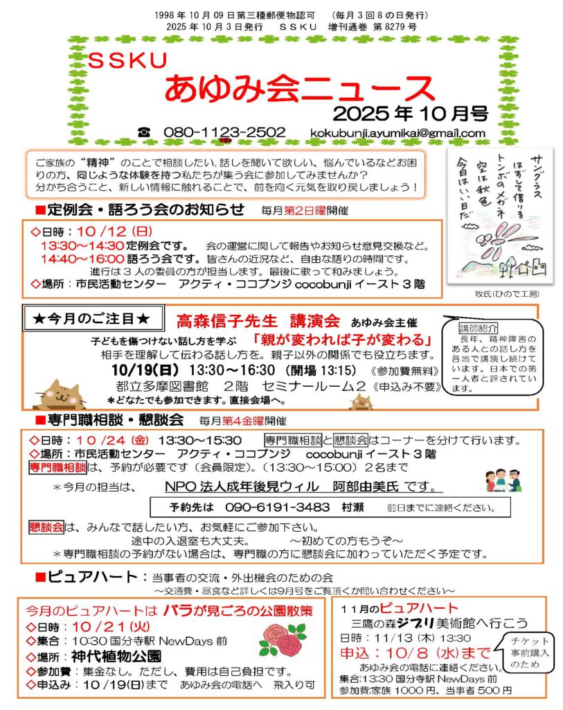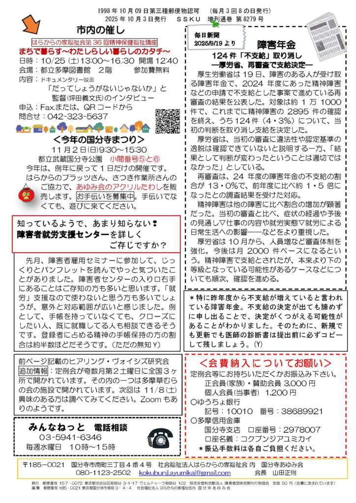 国分寺あゆみ会からのお知らせ